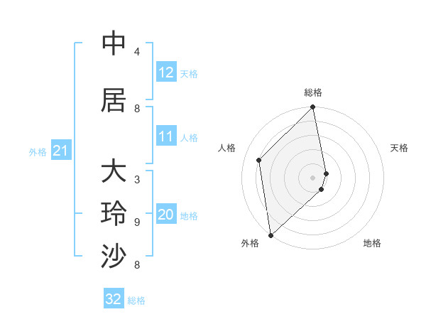 中居 大玲沙さんを姓名の画数から五運を鑑定