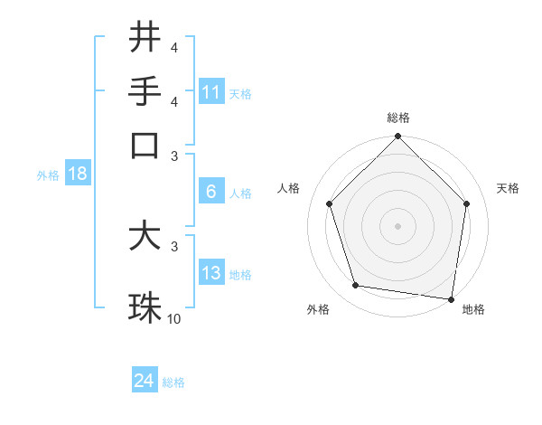 井手口 大珠さんの総格は24画の5点!