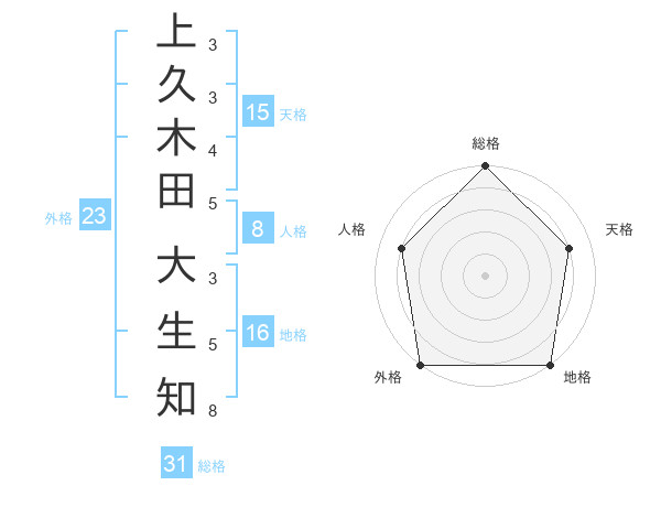 上久木田 大生知さんを姓名の画数から五運を鑑定
