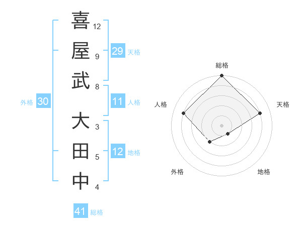 喜屋武 大田中さんの天格は29画の4点!