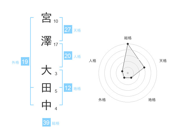 宮澤 大田中さんを姓名の画数から五運を鑑定