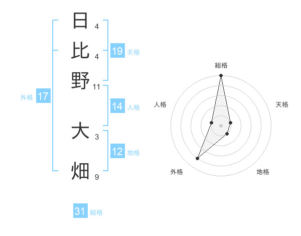 日比野 大畑さんを姓名の画数から五運を鑑定