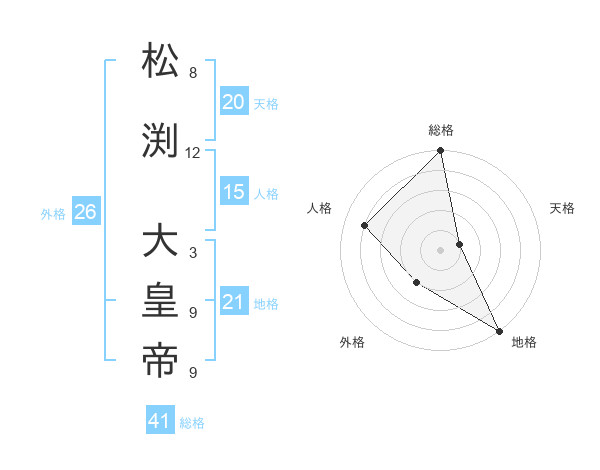 松渕 大皇帝さんを姓名の画数から五運を鑑定