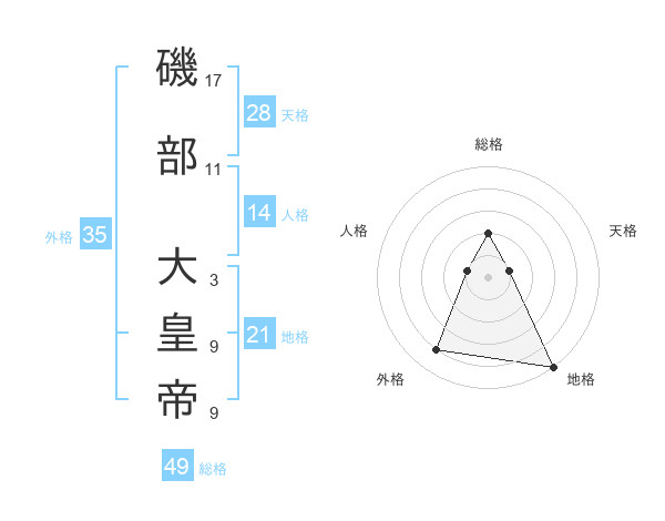 磯部 大皇帝さんを姓名の画数から五運を鑑定
