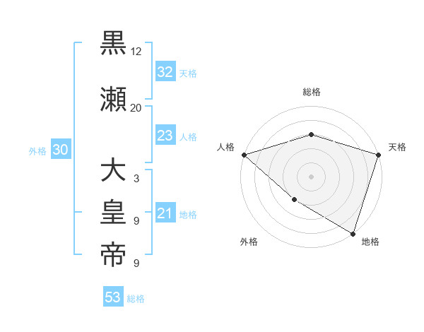 黒瀬 大皇帝さんを姓名の画数から五運を鑑定