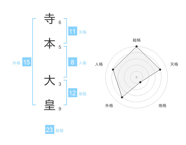 寺本 大皇さんの総格は23画の5点!