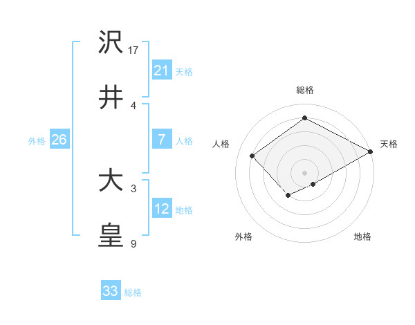沢井 大皇さんを姓名の画数から五運を鑑定
