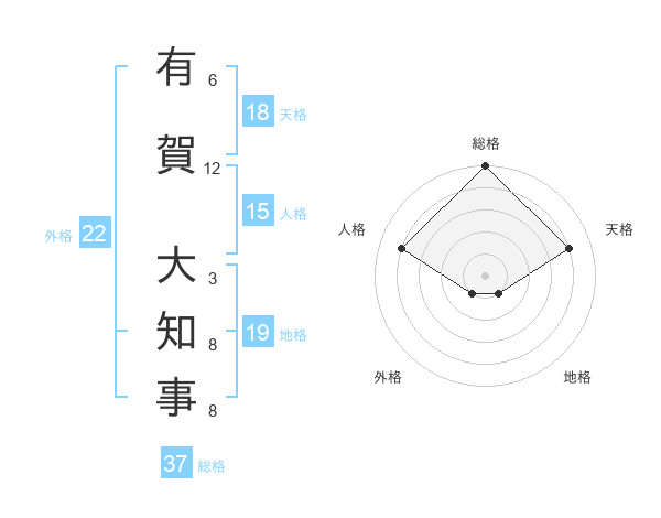 有賀 大知事さんを姓名の画数から五運を鑑定