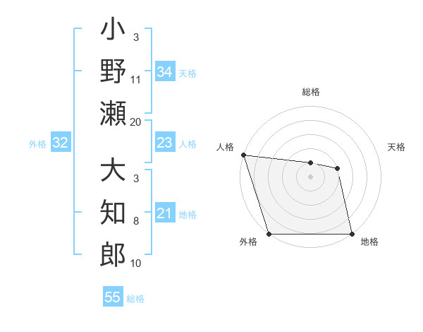 小野瀬 大知郎さんの総格は55画の1点