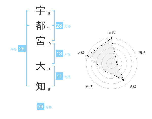 宇都宮 大知さんを姓名の画数から五運を鑑定
