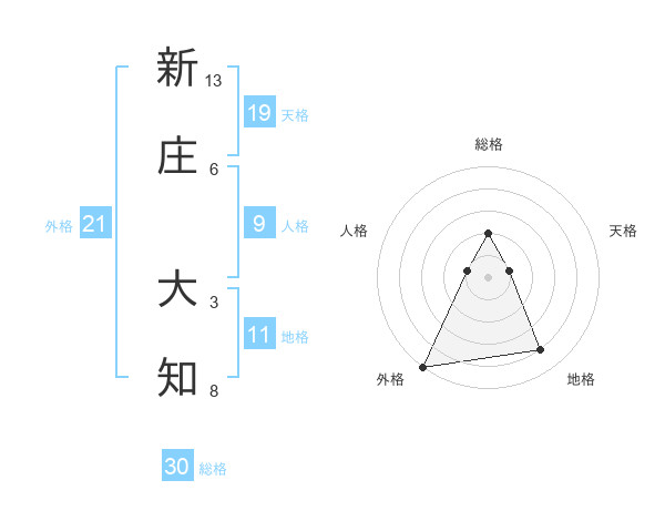新庄 大知さんの総格は30画の2点!