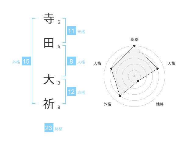 寺田 大祈さんの総格は23画の5点!