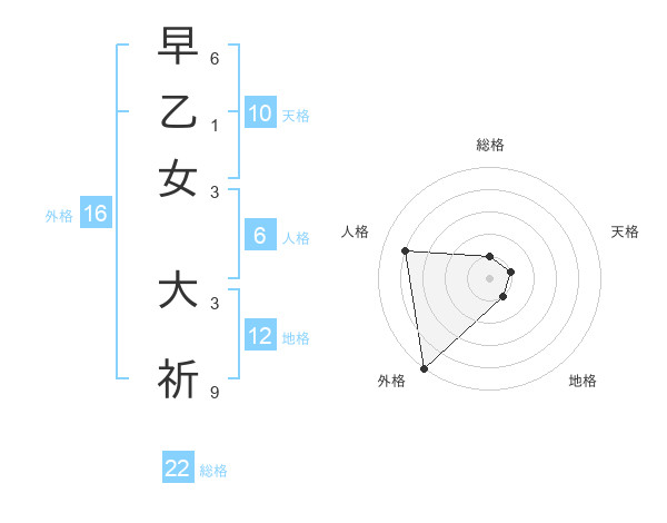 早乙女 大祈さんの総格は22画の1点!