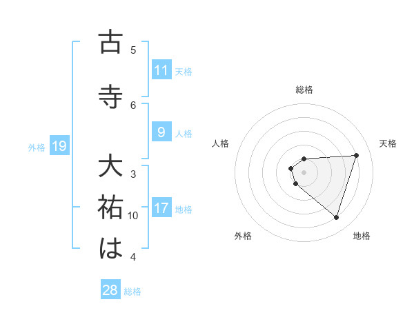 古寺 大祐はさんを姓名の画数から五運を鑑定