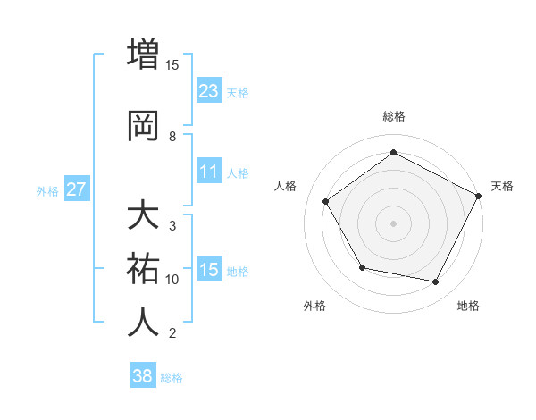 増岡 大祐人さんの総格は38画の4点!