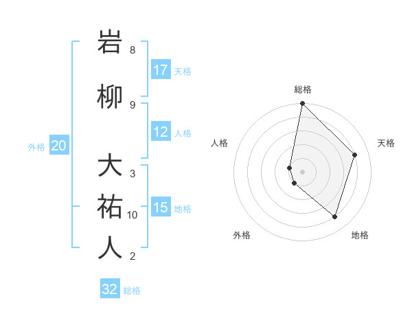 岩柳 大祐人さんを姓名の画数から五運を鑑定