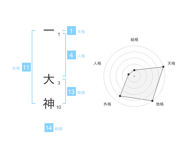 一 大神さんの総格は14画の1点!