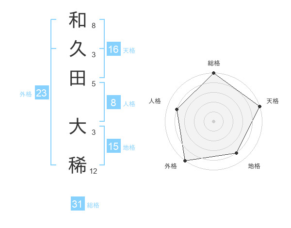 和久田 大稀さんを姓名の画数から五運を鑑定