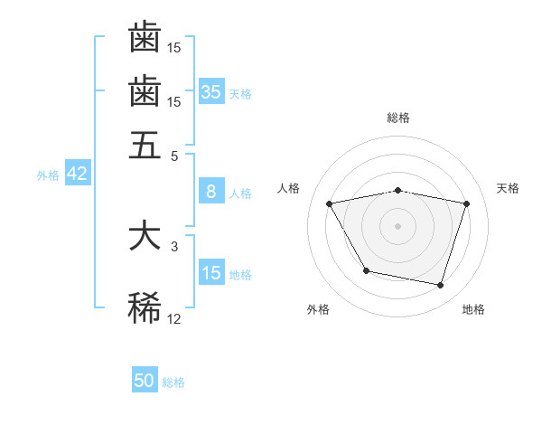 歯歯五 大稀さんの総格は50画の2点!