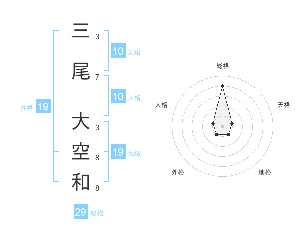 三尾 大空和さんの総格は29画の4点!