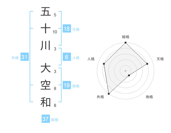 五十川 大空和さんを姓名の画数から五運を鑑定