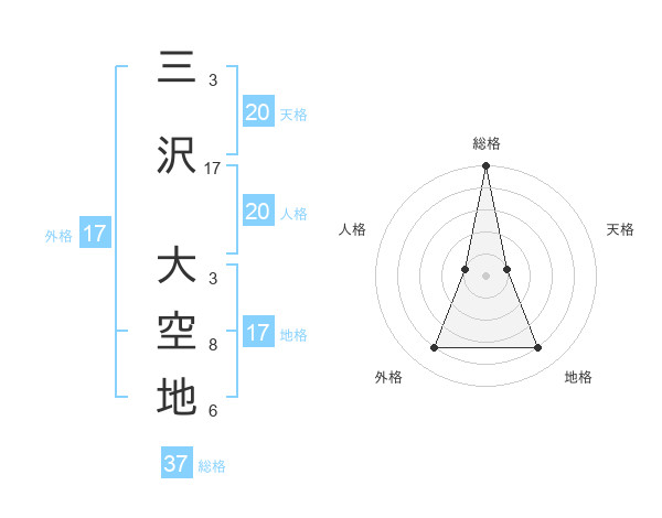 三沢 大空地さんを姓名の画数から五運を鑑定