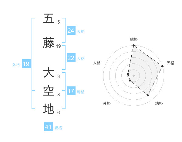 五藤 大空地さんの総格は41画の5点!