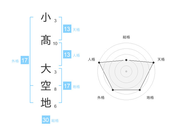 小髙 大空地さんを姓名の画数から五運を鑑定