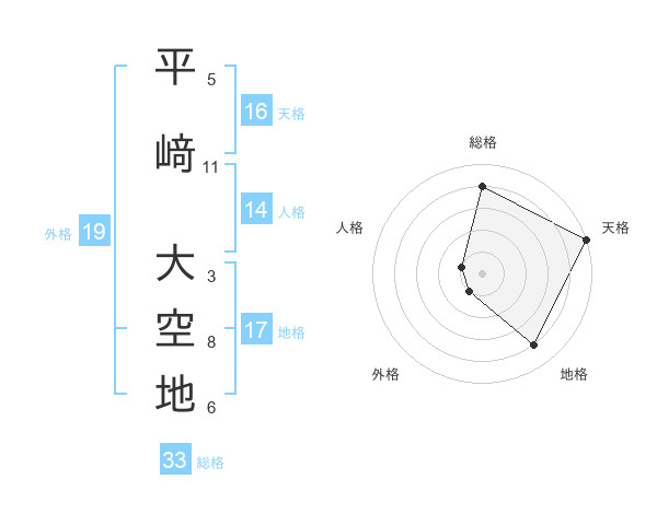 平﨑 大空地さんを姓名の画数から五運を鑑定