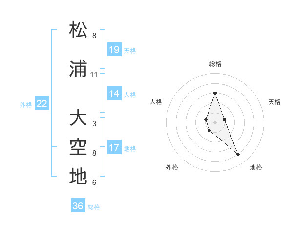 松浦 大空地さんを姓名の画数から五運を鑑定