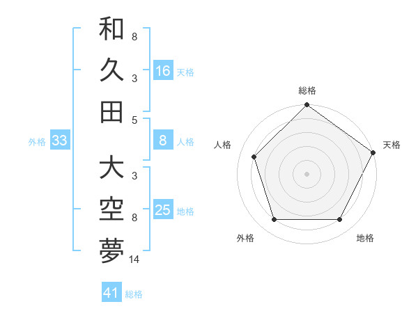 和久田 大空夢さんの総格は41画の5点!
