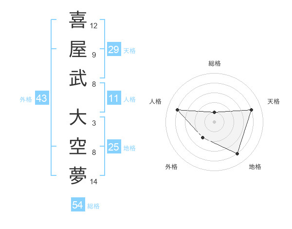 喜屋武 大空夢さんを姓名の画数から五運を鑑定