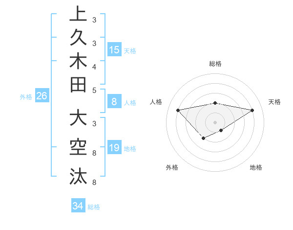 上久木田 大空汰さんの天格は15画の4点