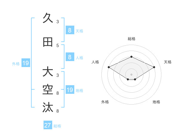 久田 大空汰さんを姓名の画数から五運を鑑定