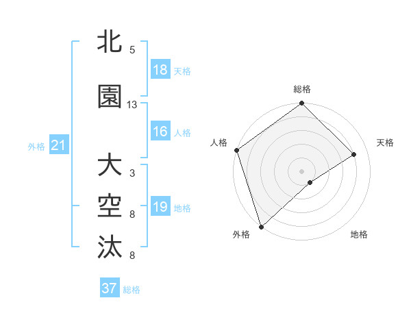 北園 大空汰さんの総格は37画の5点