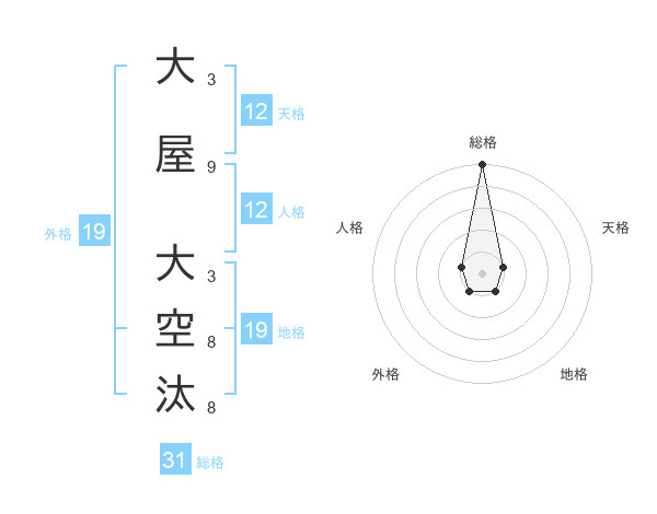 大屋 大空汰さんを姓名の画数から五運を鑑定