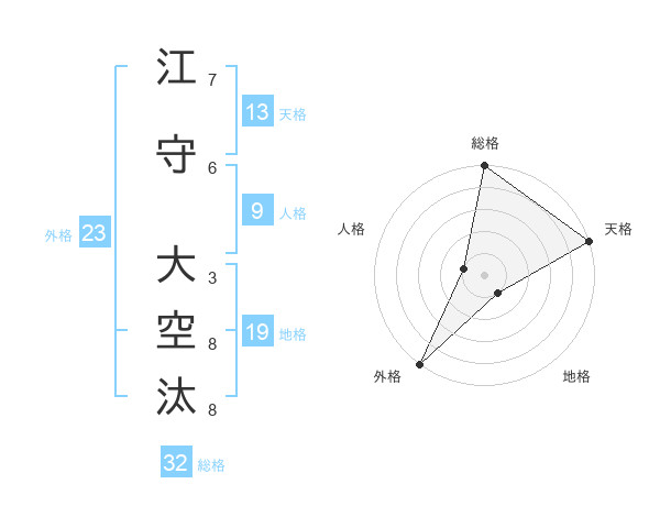 江守 大空汰さんを姓名の画数から五運を鑑定