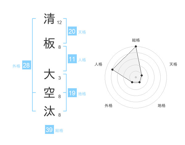 清板 大空汰さんを姓名の画数から五運を鑑定