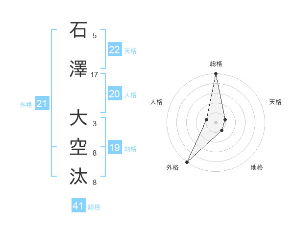 石澤 大空汰さんを姓名の画数から五運を鑑定