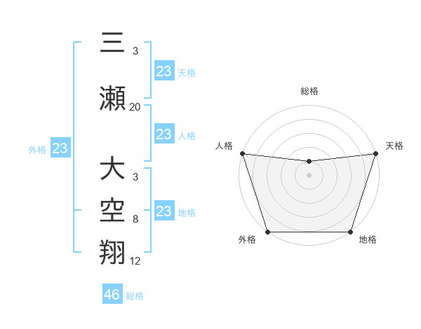 三瀬 大空翔さんの天格は23画の5点!