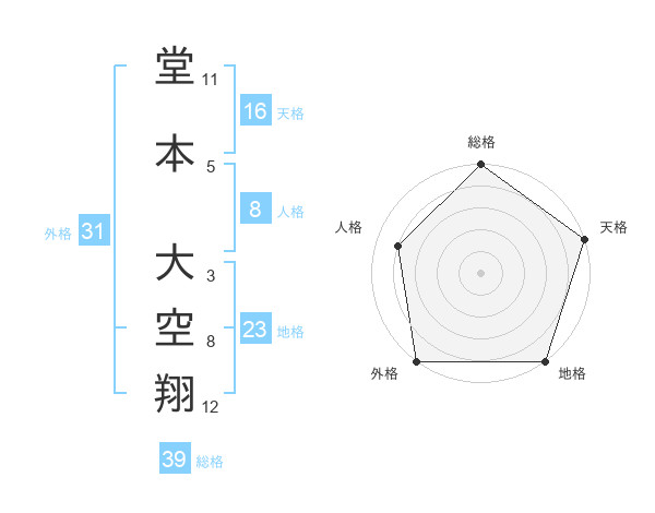 堂本 大空翔さんを姓名の画数から五運を鑑定