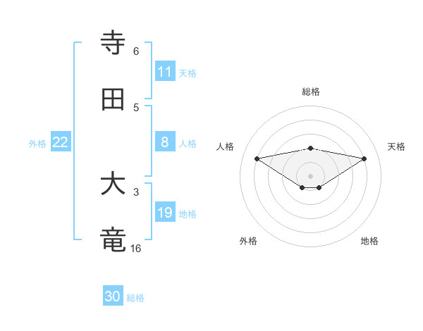 寺田 大竜さんを姓名の画数から五運を鑑定