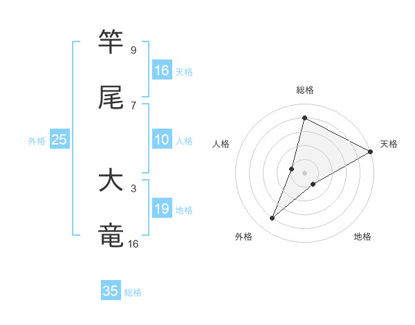 竿尾 大竜さんを姓名の画数から五運を鑑定