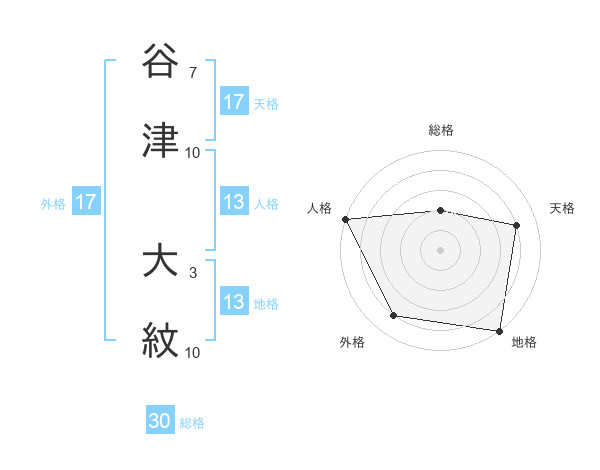 谷津 大紋さんを姓名の画数から五運を鑑定