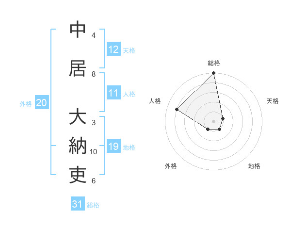 中居 大納吏さんを姓名の画数から五運を鑑定