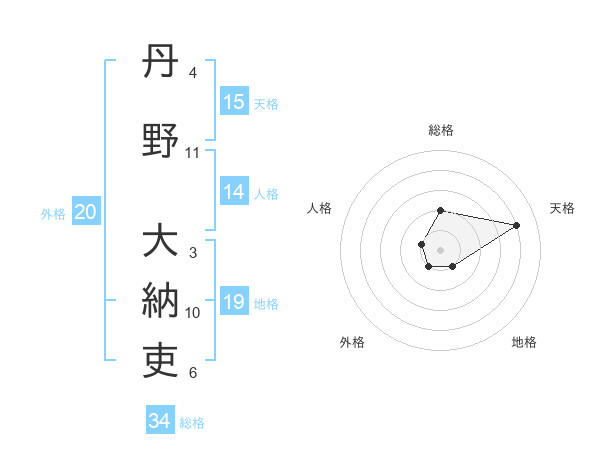 丹野 大納吏さんの天格は15画の4点!