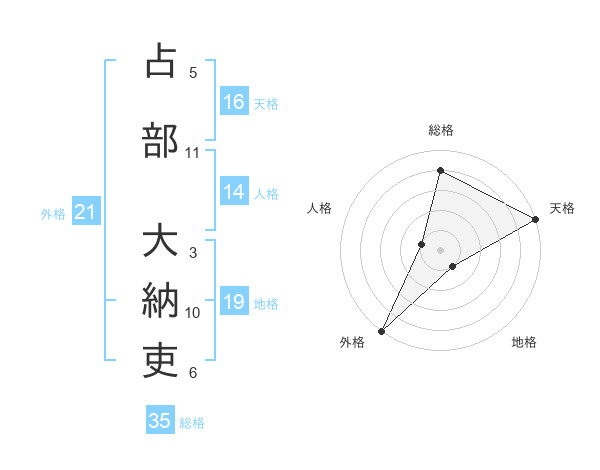 占部 大納吏さんを姓名の画数から五運を鑑定