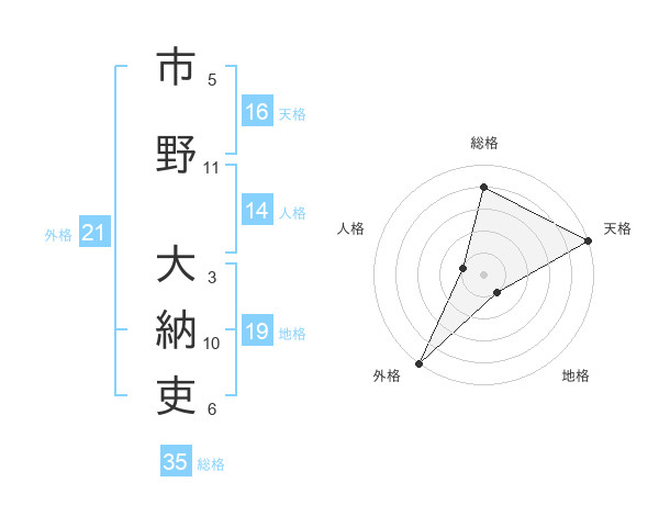 市野 大納吏さんを姓名の画数から五運を鑑定