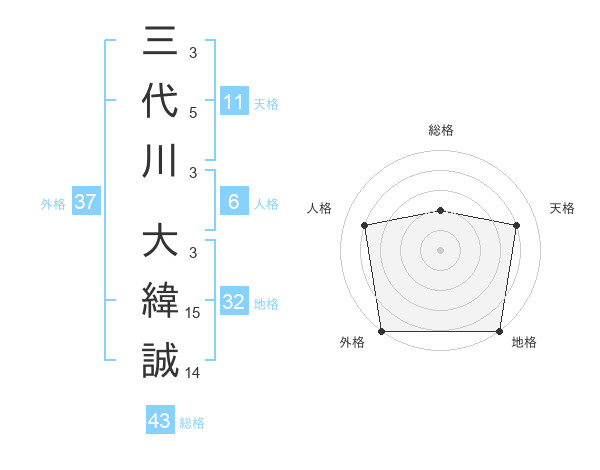 三代川 大緯誠さんを姓名の画数から五運を鑑定