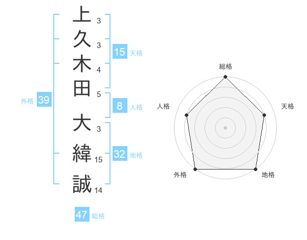 上久木田 大緯誠さんを姓名の画数から五運を鑑定